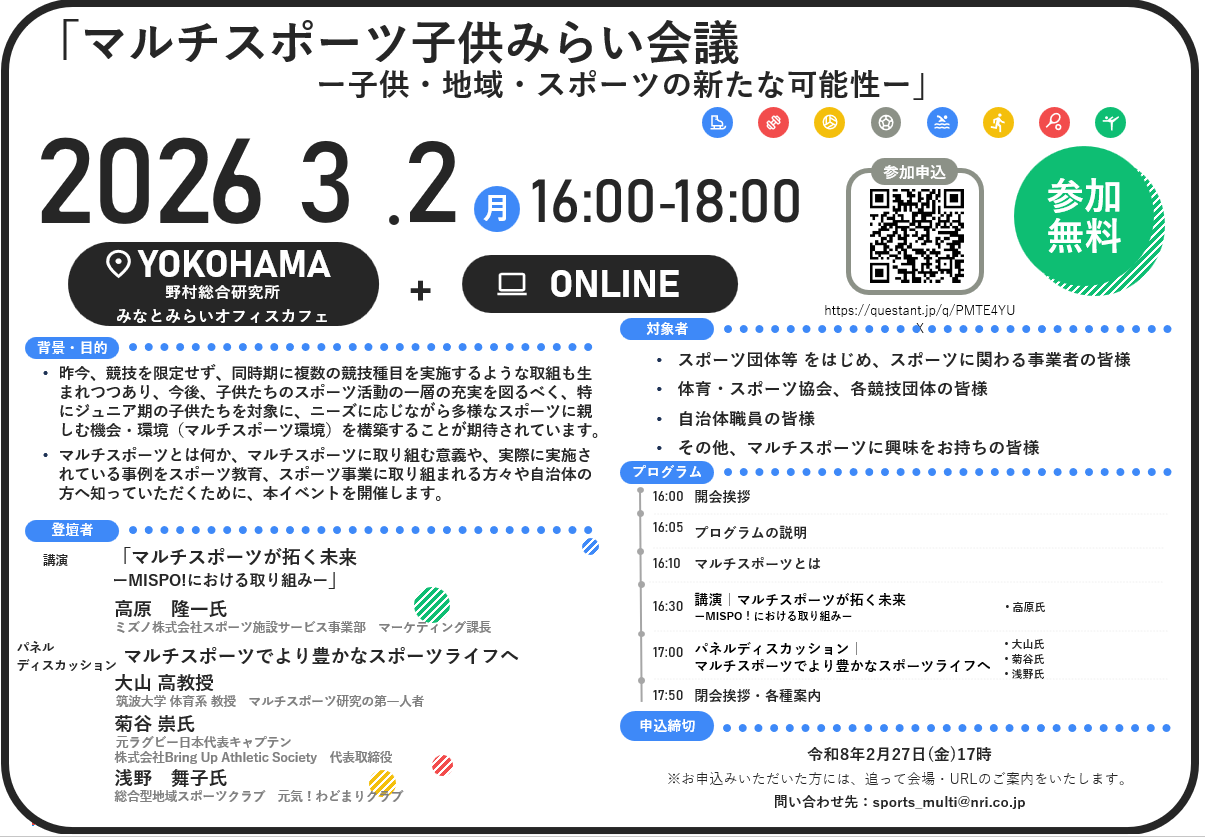2026/02/18「3月2日、マルチスポーツ子供みらい会議ー子供・地域・スポーツの新たな可能性ー」(野村総研)をアップ